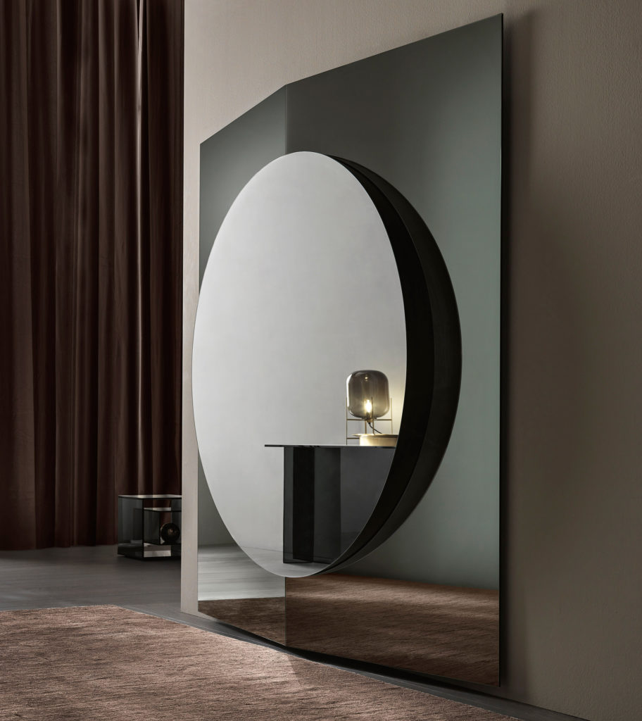 Split is a family of mirrors characterized by a vertical cut; within this cut two inclined mirrored surfaces reflect the surrounding space and reflect each other, creating a dynamic game of...