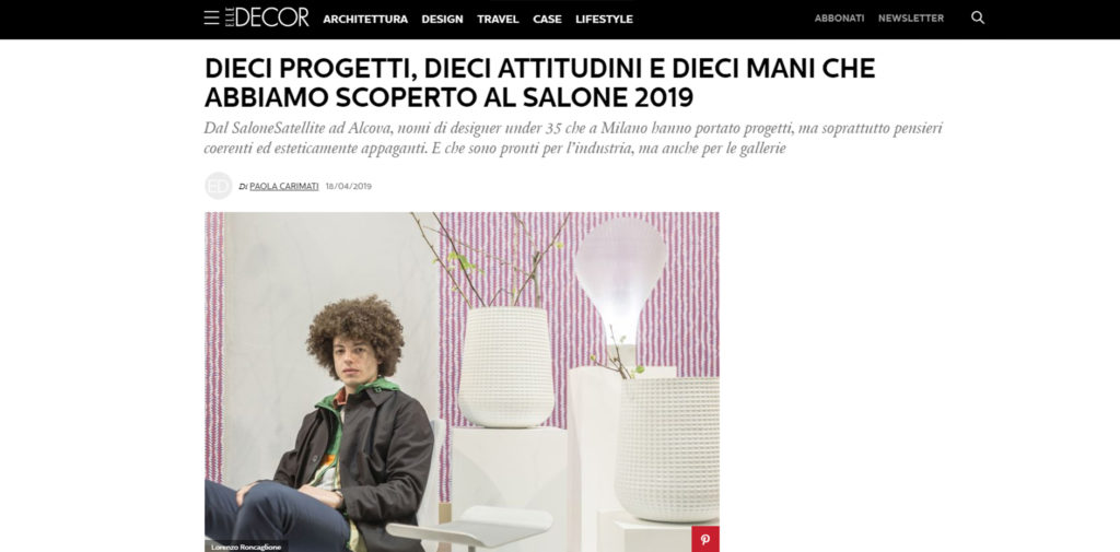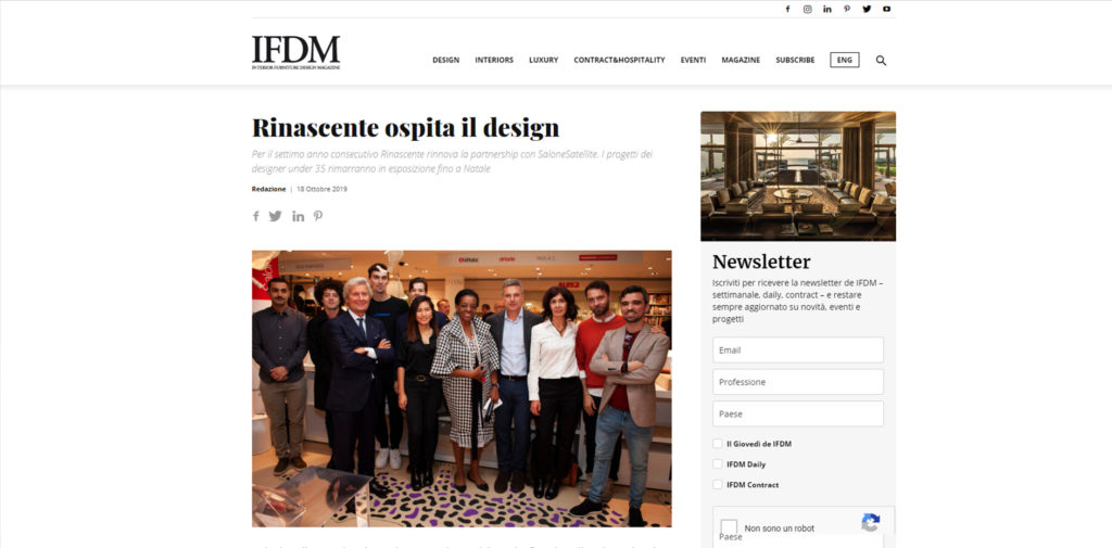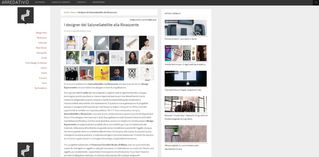 - 2019.10 With Salone Satellite in Rinascente, Corriere della Sera Living web