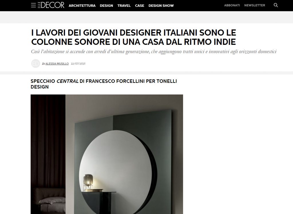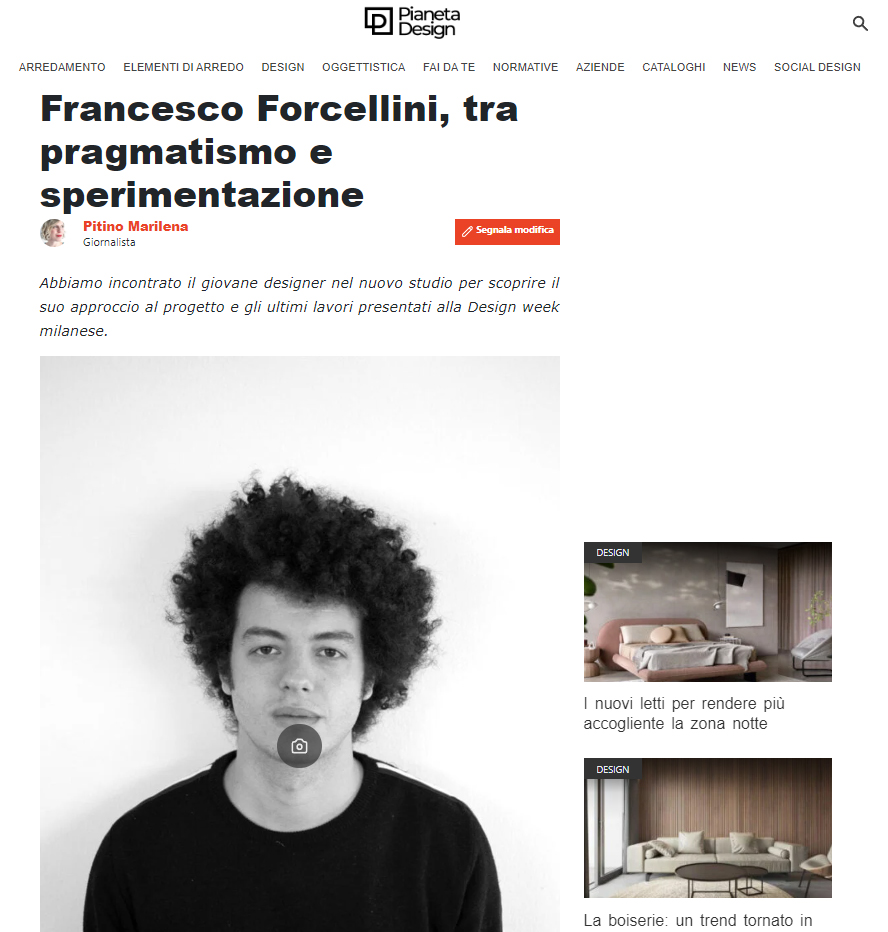 - 2024.06 "Designer Scouting – Francesco Forcellini, Quanto l' industrial design è fatto bene" - Elle Decor