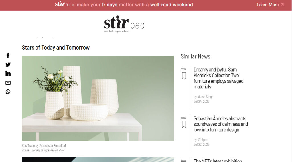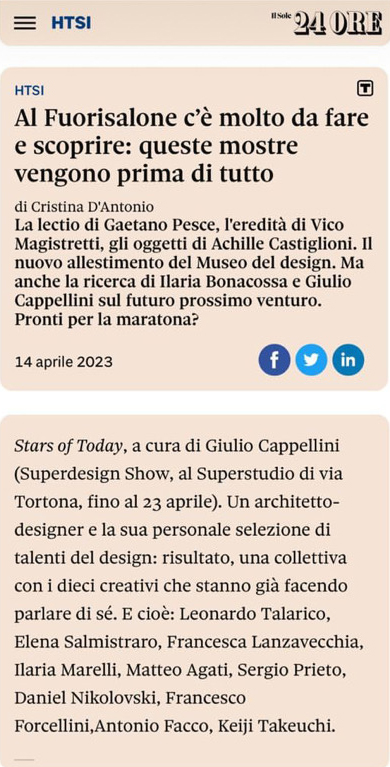 - 2023.04Stars of Today by Giulio Cappellini, Superdesign Show, , Milano Design Week, Superstudio Più, Via Tortona 27, Milano, Italia
